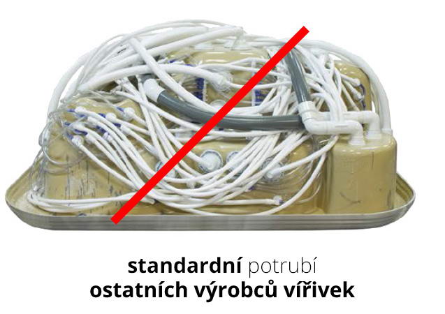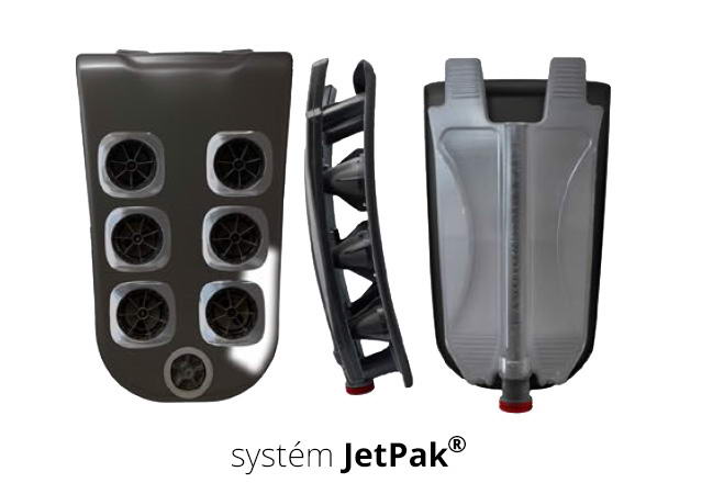Zejména tento fakt, že vířivky mají o 90% méně potrubí než u ostatních výrobců. Riziko úniku vody a vzduchu je tudíž sníženo na minimum. S konstrukcí a technologií JETSpak není třeba žádných dlouhých přívodních trubek, větvení a dělících ventilů, což minimalizuje tření uvnitř trubek. To má za následek mnohem výkonnější trysky, které mohou i při plném výkonu pracovat současně. Díky vedení trubek převážně teplou vodou v lázni je dosaženo minimální tepelné ztráty.